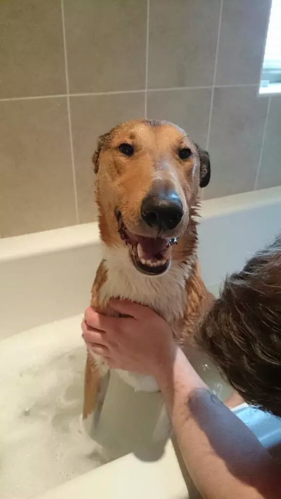 His weight was around 40kg, yet a tall, male smooth collie