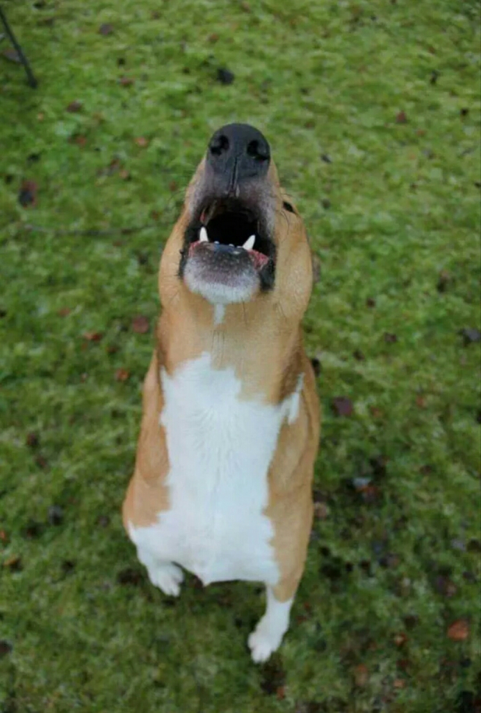| Doing what he loves best: howling. |