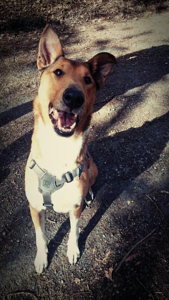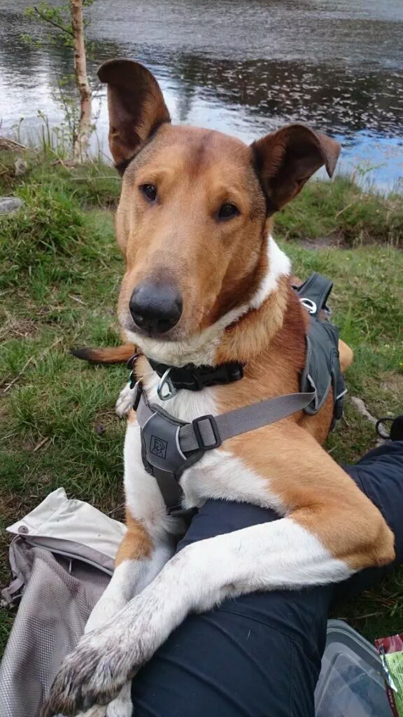 Here's Viggo sporting his Ruffwear harness and collar.