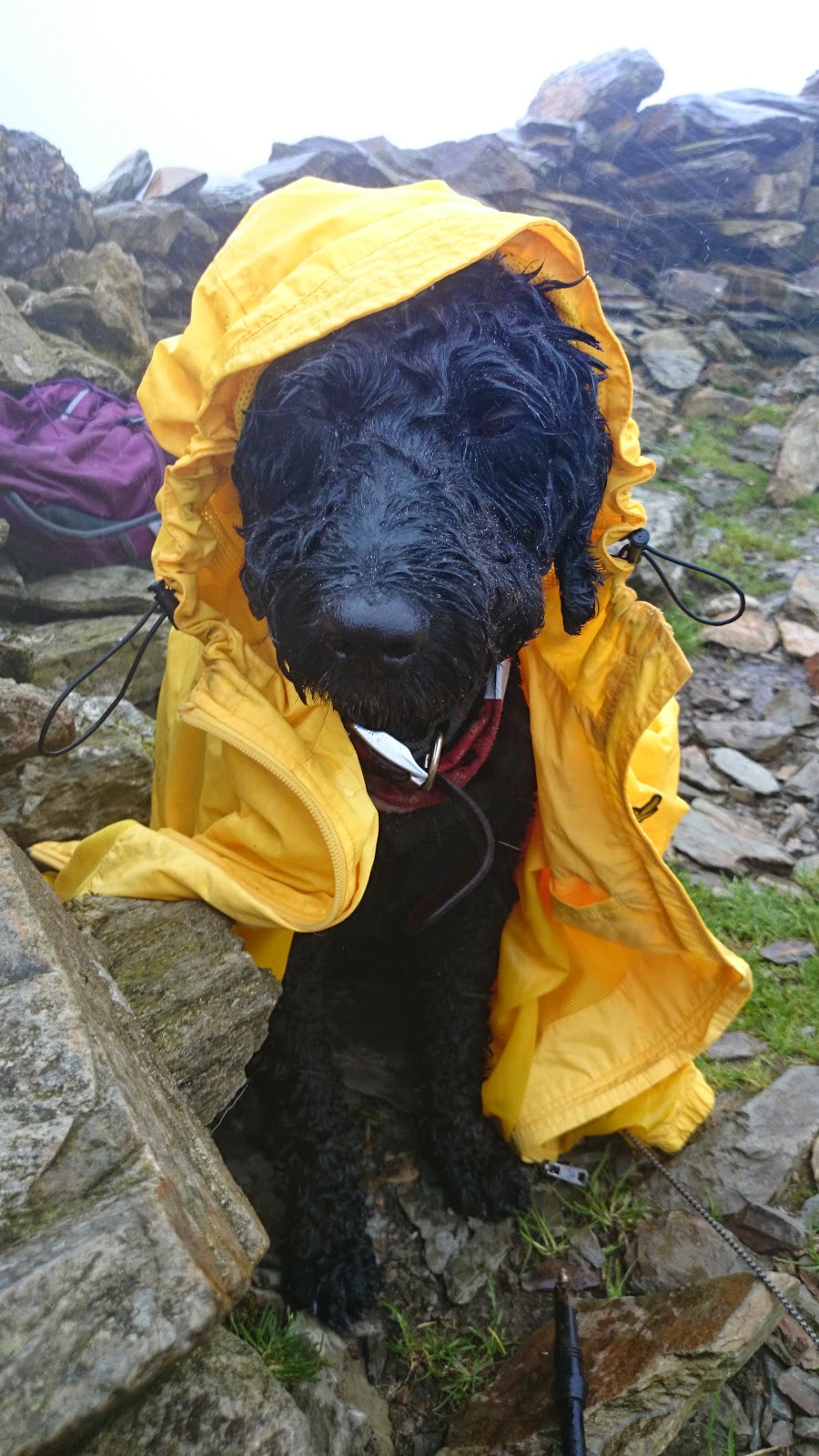 #TeamFell's Jasper at the soaked summit of Black Combe.